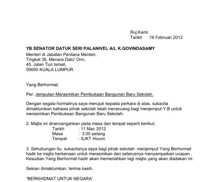 Surat Rasmi Jemputan Menteri Besar - Rasmi Sub via rasmisub.blogspot.com